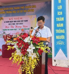 Phát biểu tại buổi lễ, Thầy Vũ Tiến Dũng – Hiệu trưởng nhà trường, đã gửi lời chúc mừng tới toàn thể đội ngũ giáo viên, đồng thời nhấn mạnh vai trò quan trọng của người thầy trong việc truyền đạt tri thức, giáo dục nhân cách và truyền cảm hứng cho thế hệ trẻ. “Mỗi thành công của học sinh đều là niềm tự hào lớn nhất của nhà trường và các thầy cô” Thầy nhấn mạnh.